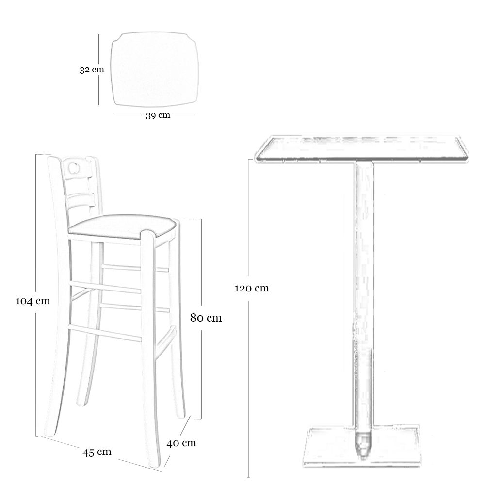 Le dimensioni sono studiate per garantire comfort e funzionalità: l'altezza dal pavimento alla seduta è di 80 cm, mentre l'altezza complessiva fino alla spalliera è di 104 cm.