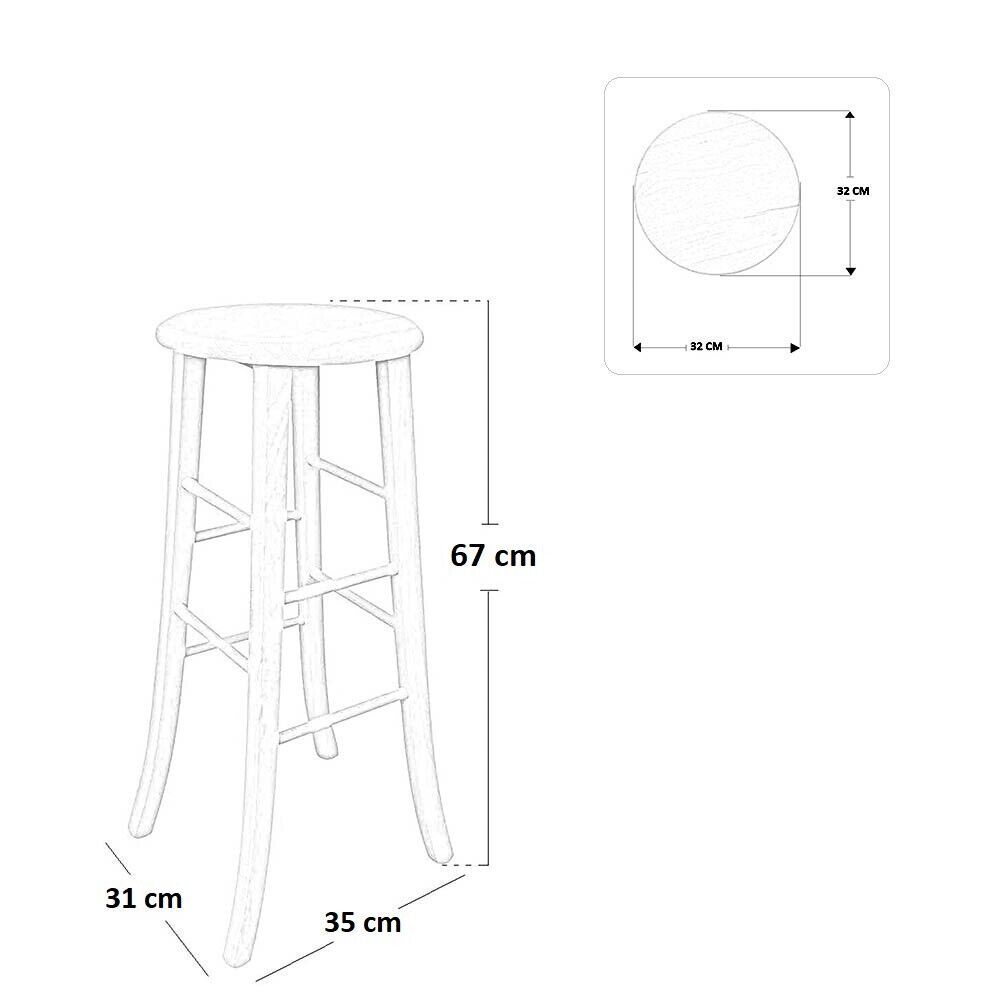 Dimensioni principali: altezza seduta 67 cm, diametro della seduta 32 cm