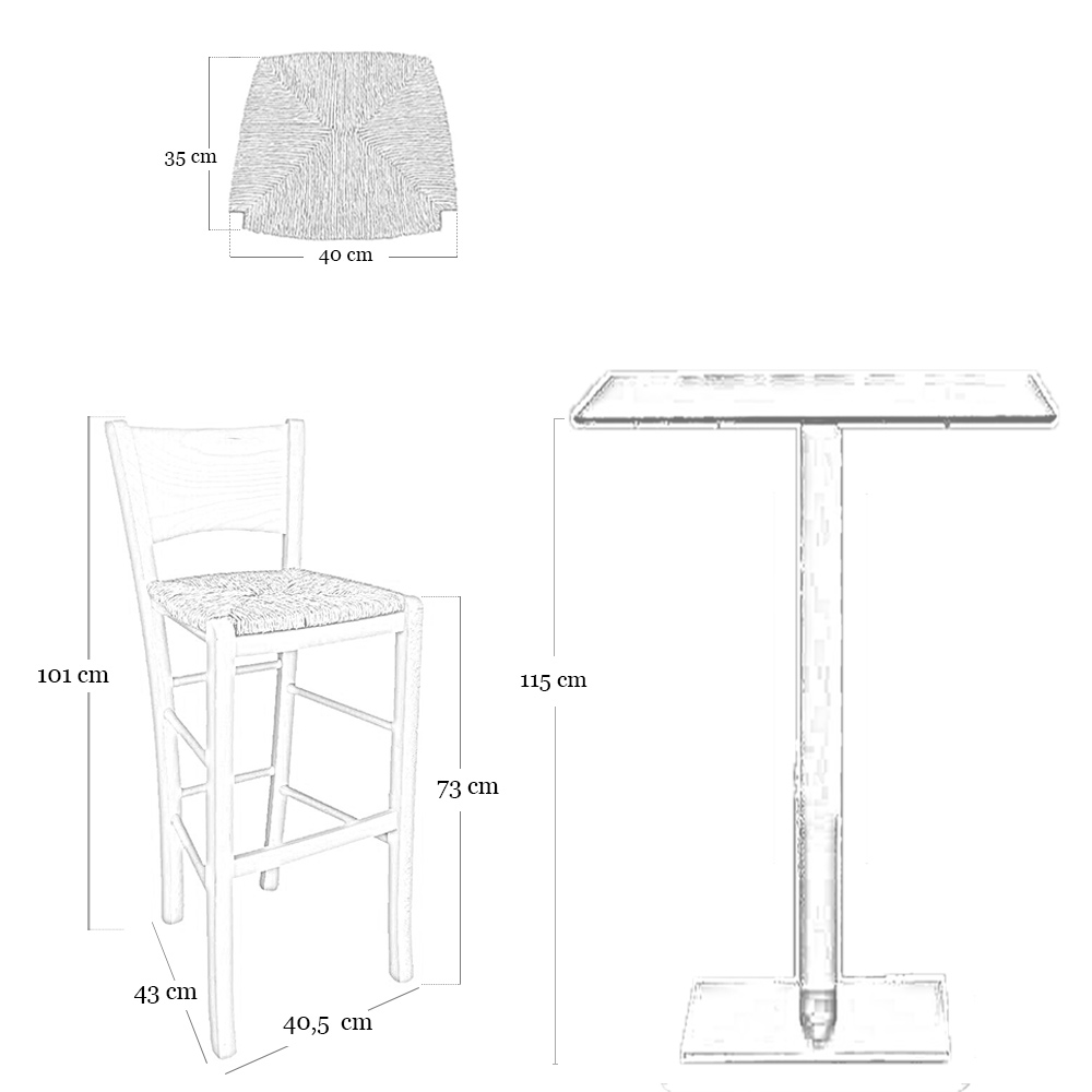 Misure ideali: altezza seduta 73 cm, altezza totale con schienale 101 cm; seduta 42x36 cm.