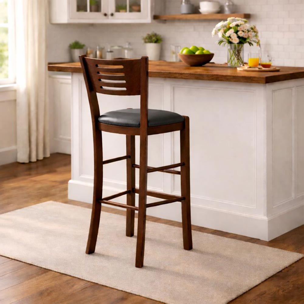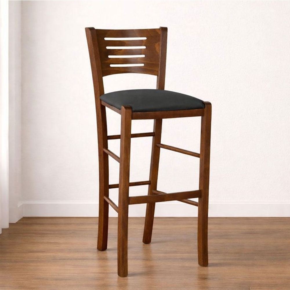 Sgabello verona in legno noce scuro con seduta similpelle imbottita antracite