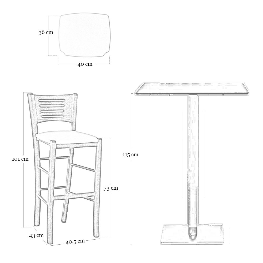 Lo sgabello si adatta a tavoli o piani alti da cm 100 a cm 115