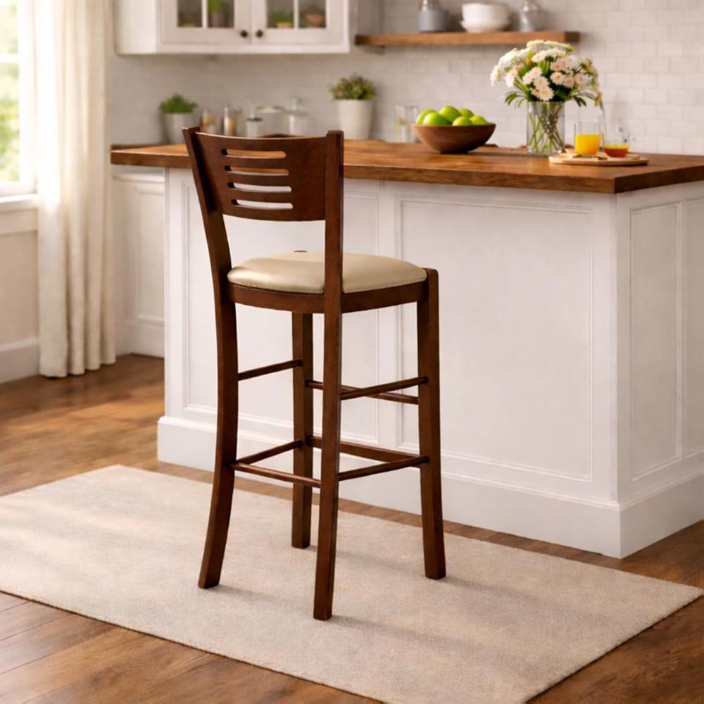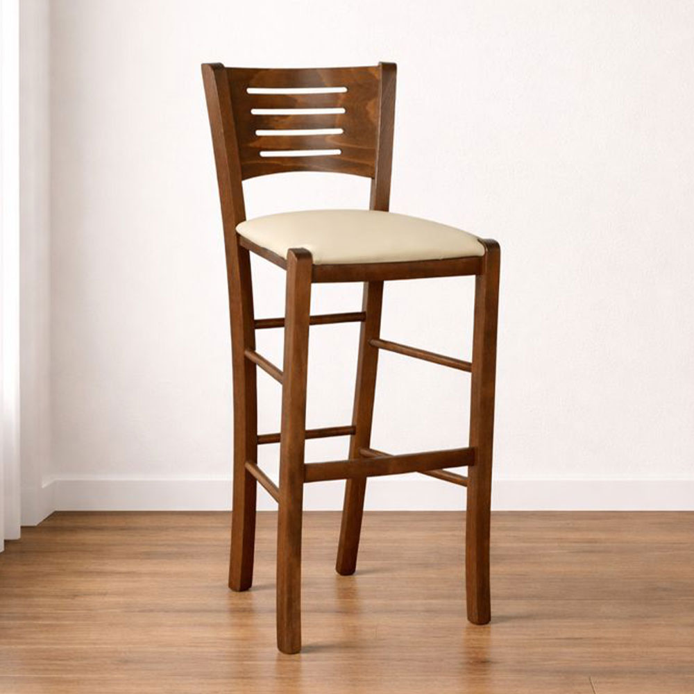 Sgabello verona in legno noce scuro con seduta similpelle imbottita beige