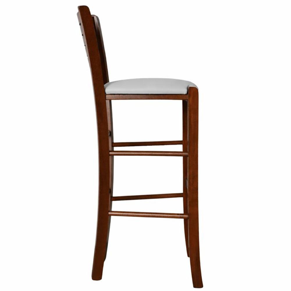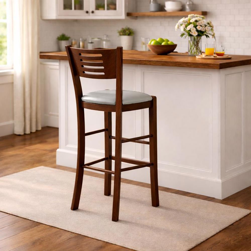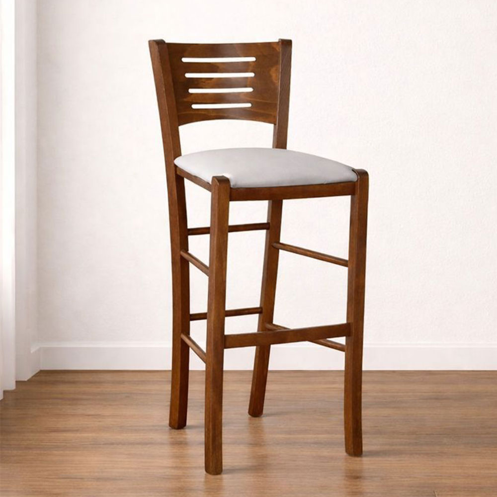 Sgabello verona in legno noce scuro con seduta similpelle imbottita grigio chiaro