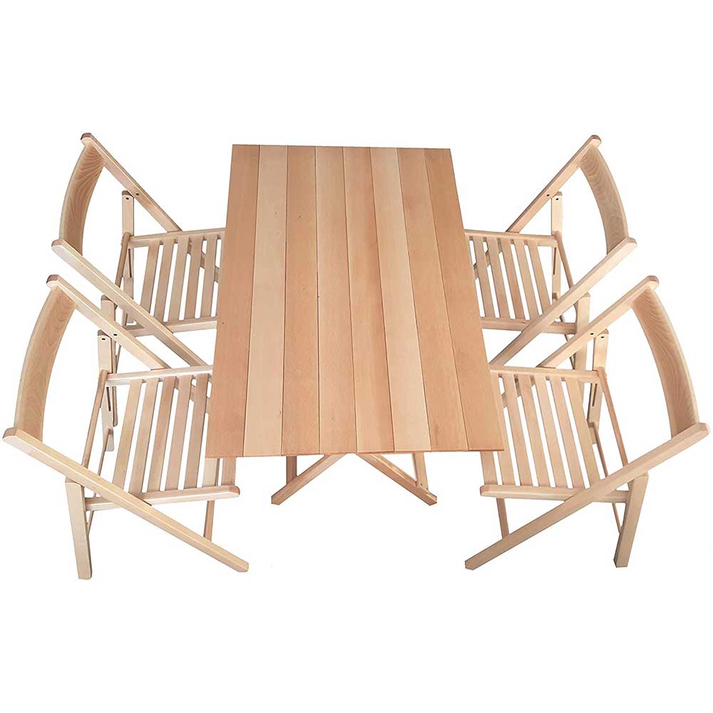 Tavolo con 4 sedie pieghevole in legno di faggio, ideale per campeggio,